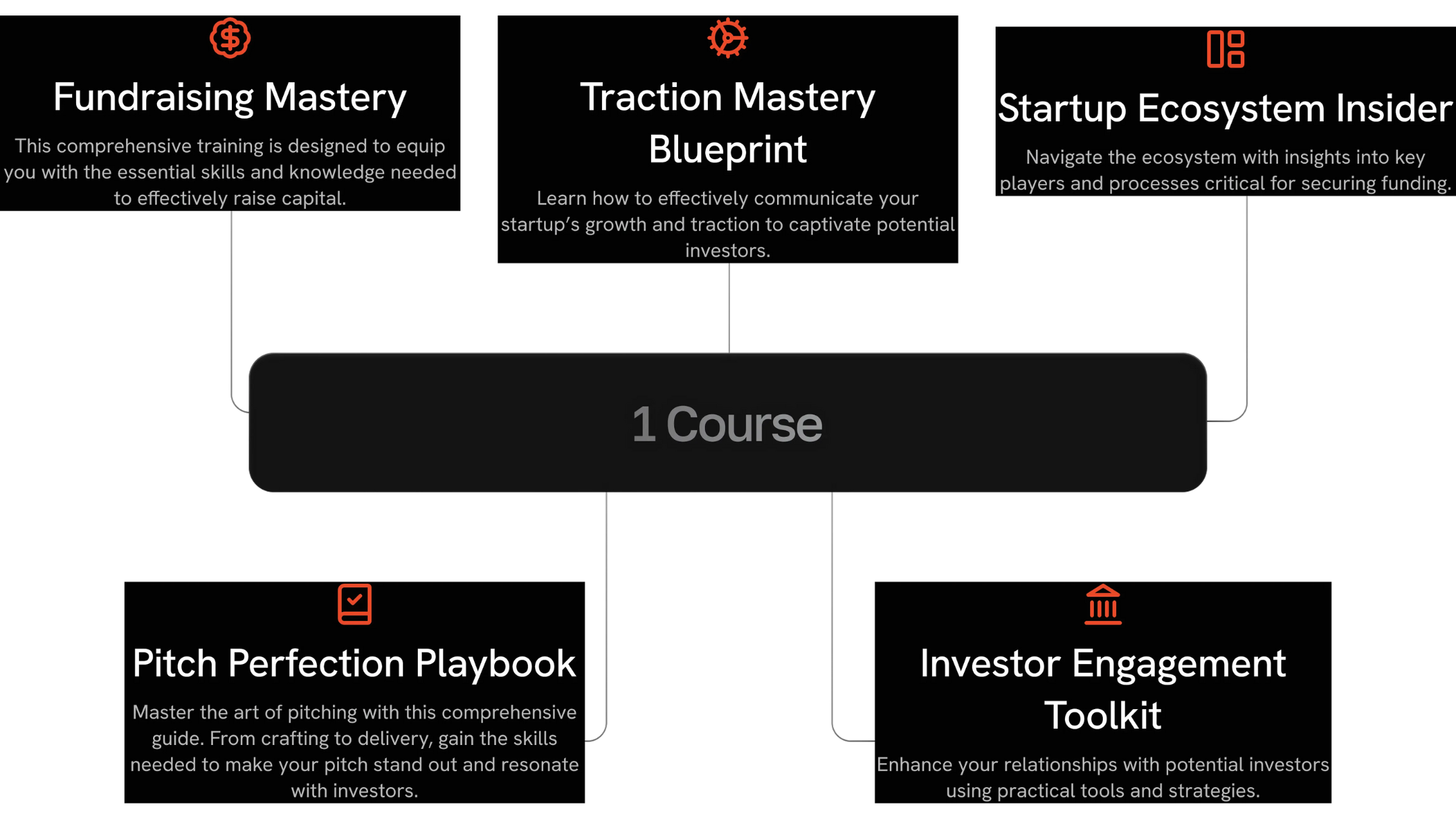 You are getting instant access to the Fundraising Mastery Program, which includes comprehensive video lessons and fundraising tools. The package includes four free bonuses: the Traction Mastery Blueprint, Startup Ecosystem Insider Guide, Pitch Perfection Playbook, and Investor Engagement Toolkit. Together, these resources provide everything you need to successfully raise capital for your startup.